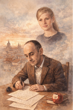 SCENE A museum art gallery. An elderly couple enter, walking slowly while deep in conversation. He is tall of stature with good posture, much better...