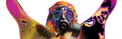 a plastic ballerina given the in-utero treatment, gas mask and wings
