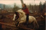 Growing up with my pony wasn’t all about play however. She had purpose, just like the big horses. Just like we all did. Several times my dad had me harness Jellybean and out to the bush we would go. Jellybean and I would stand back out of the way while dad cut down trees for firewood or building material. He’d wave JB and me into the brush and through snow past our knees we would make a path and hook onto a fallen tree. I’d hop onto her back and giving her a kick she would throw herself into the harness and together we would drag the tree out into the clearing. I don’t know why but Jellybean never gave me attitude when we worked. Maybe because she was too busy sweating. Just like a real horse.